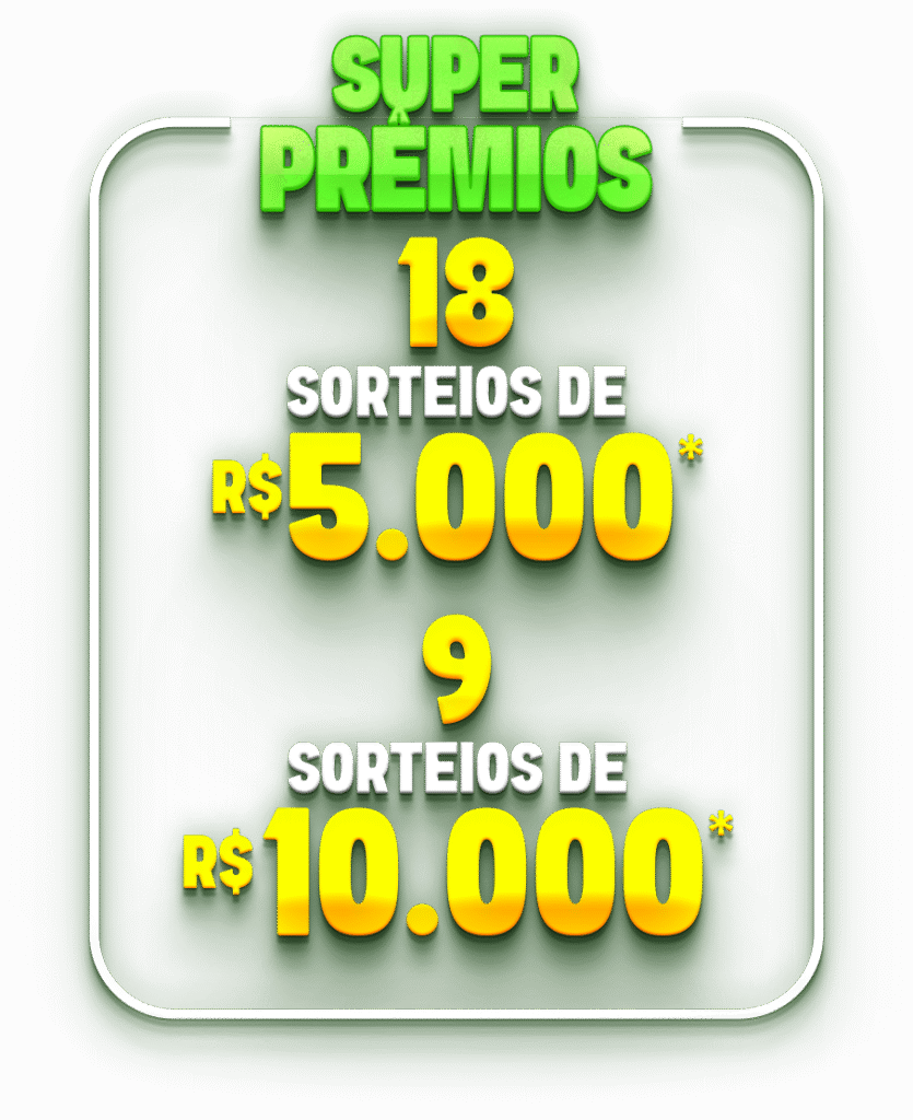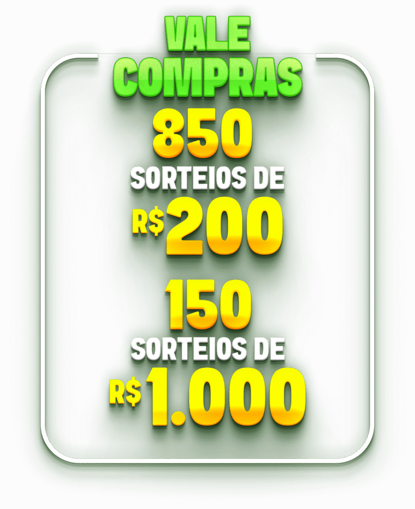 Promoção válida para compras de 29/11/2025 a 27/02/2026. Consulte o regulamento nas lojas e em nosso site. Certificado de Autorização SPA/ME Nº 06.046656/2025. O pagamento das premiações de R$10.000,00 e R$30.000,00 será realizado por meio de cartão pré-pago Alelo, que permite compras na modalidade crédito à vista em lojas físicas e online, além de saques na rede Banco24Horas.